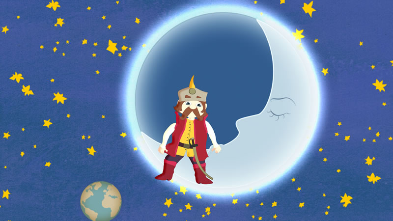 Nasz bohater spadał i spadał. Wtem oślepiło go srebrzyste światło i poczuł, że nie leci już dalej. Tak oto Mistrz Twardowski wylądował na Księżycu. Siedzi tam podobno do dzisiaj, tęskniąc za domem.